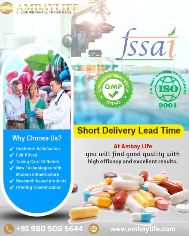 Ambay Life is one of India’s most reputed and fast-growing pharmaceutical companies, setting new benchmarks in quality, innovation, and service. Our operations are backed by certifications from WHO-GMP and ISO.